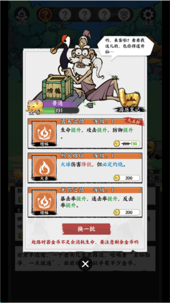 5、在商店里可以花钱买技能卡,要是没看上的,也能刷新换一批新的。
