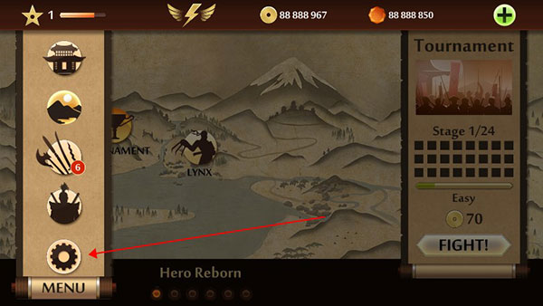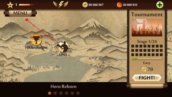 1、先把游戏装好,打开之后在主界面上,点一下右上角的“MENU”菜单按钮。