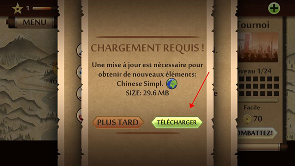3、接着在语言选项里找到“Chinese Simpl”(简体中文),会弹出一个确认框,点右边那个绿色的“TELECHARGER”按钮就行。