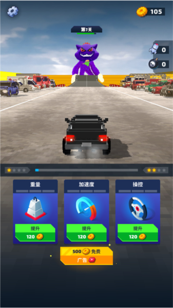 2、升级系统:通过不断挑战关卡,你就能升级现有的车辆,提升破坏力,这个成长过程挺有成就感的。