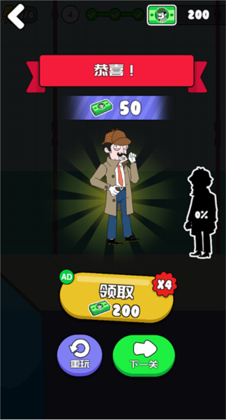 3、要是你选的道具没问题,就能顺利过关,还能拿到点钞票奖励。喏,就像下面这张图一样,成功了。