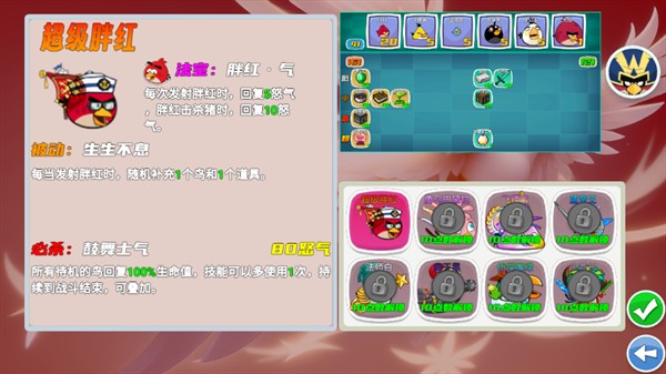 3、里面的鸟角色种类挺丰富的,每个都有自己的看家本领,对着那些绿皮猪能造成成吨的伤害,用起来非常解压。