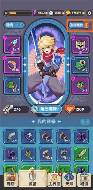 只要你凑齐了4个英雄,助战系统就开了。在装备界面右上角,点一下就能设置支援角色。这么做不仅能毛到英雄的属性加成,关键是还能白嫖支援英雄的初始秘宝。