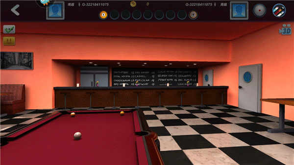 2、操作逻辑很简单,就是调角度、拉杆控制力度,然后一杆怼出去。规则跟现实里打球差不多,谁先把最后一颗黑8干进去谁就赢。