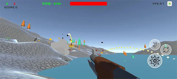 1、左下角可以操控人物进行移动,右边的按钮是开火按钮;