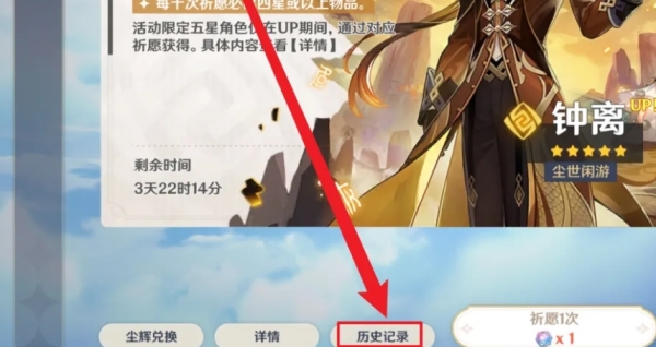 2、进了抽卡界面后,往左下角看,有个【历史记录】的按钮,点进去。