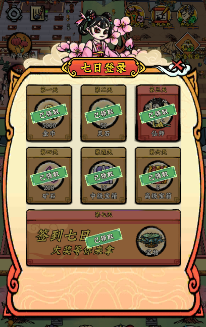 1、头等大事就是提升自己的声望,还有开垦道场。这两件事都需要海量的铜币来支持,所以刚进游戏送的“仙礼”(也就是登录奖励)可千万别忘了领。