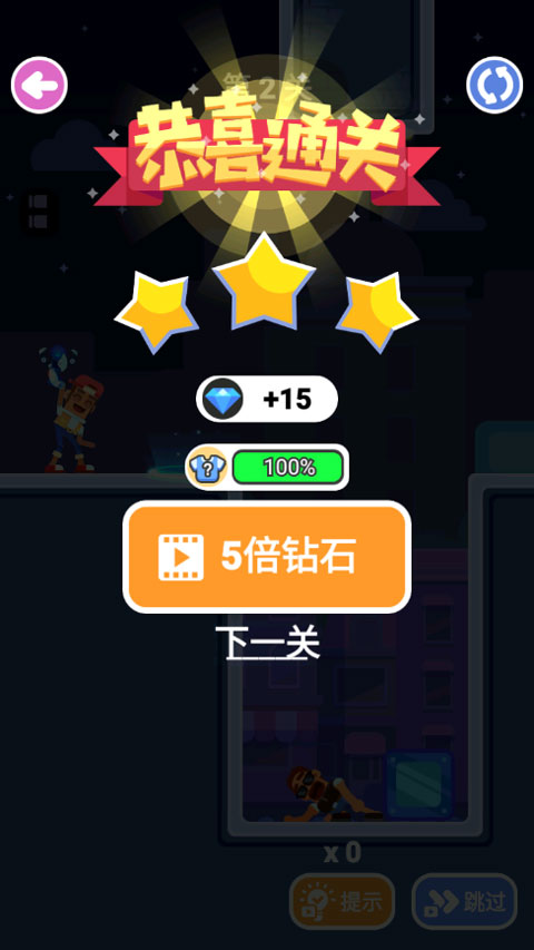 5、你的任务就是用这套操作,把关卡里所有敌人都给清掉。干掉他们之后,还能拿到点奖励,继续下一关。