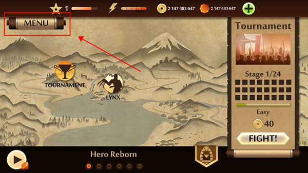 1、游戏下好了装上,进去先别急,点左上角那个MENU菜单键,就下面截图里圈出来的那个。
