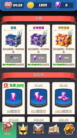 7、商店里能买各种宝箱,不过这些玩意儿得用钻石或者钥匙开,属于氪金点。