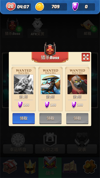 8、钻石不用愁,每次成功干掉一个Boss,系统都会送你一些钻石奖励。