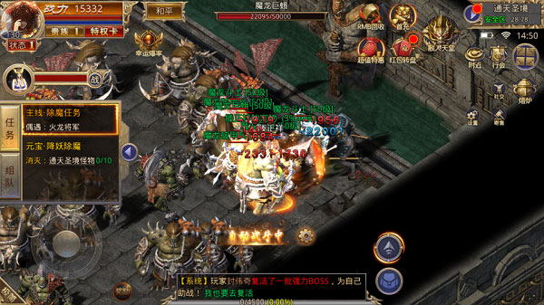 6、然后就是魔域这个玩法,能拿下首杀就尽快拿下。你要是服务器第一个干掉BOSS的,后面别人领首杀礼包的时候,系统公告上会一直显示你的大名,够你吹一阵子了。