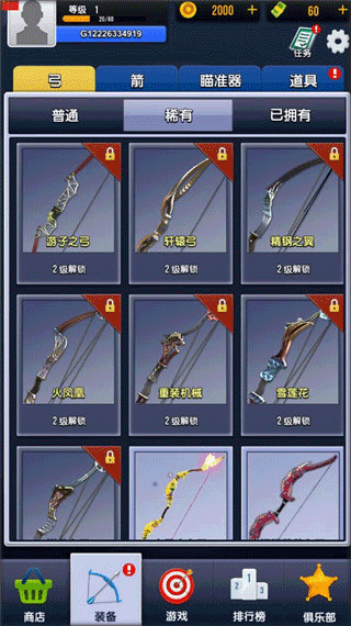 7、除了比赛奖励,提升等级也能解锁更多更强的弓箭。所以多玩多练就对了。