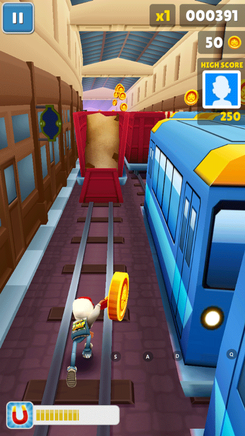 《地铁跑酷》核心玩法为无尽跑酷模式,分数提升主要来自等级、滑板、开局道具、宝物与场内道具等因素。