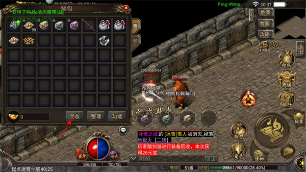 1、进入游戏后在右上角功能选项中找到“装备回收”入口。