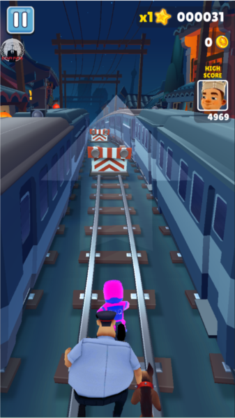 4、遇到前方静止火车时,向左右移动进行躲避,保持前进节奏。