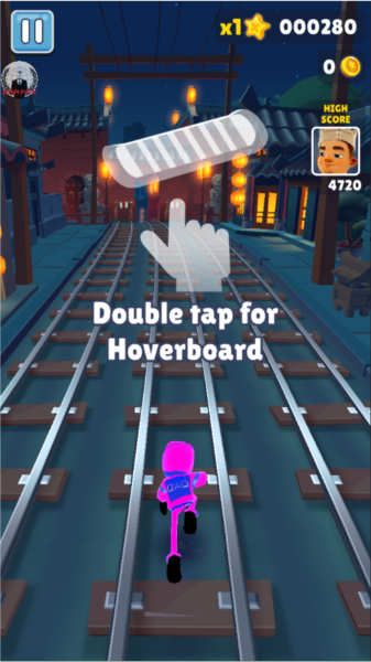 5、出现滑板道具时点击使用,可以短时间提升速度与容错率。