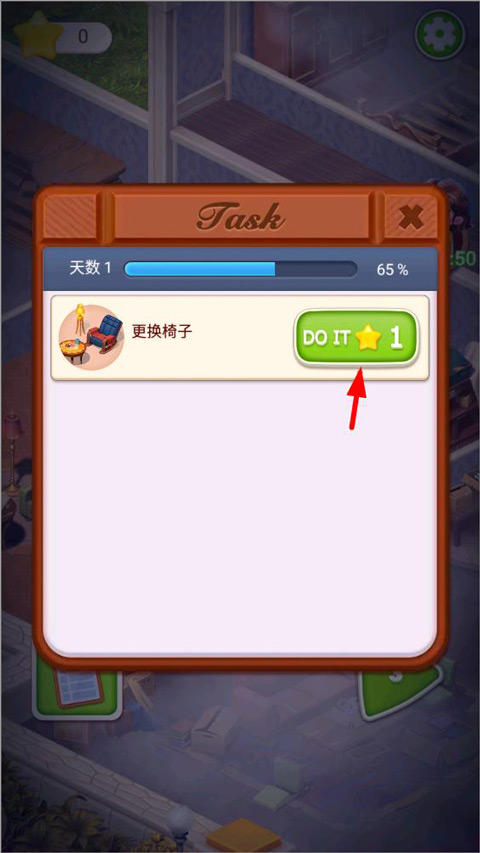 7、记住,不管是打扫卫生还是换新家具,都得靠玩三消游戏赚星星来兑换。没星星就啥也干不了。