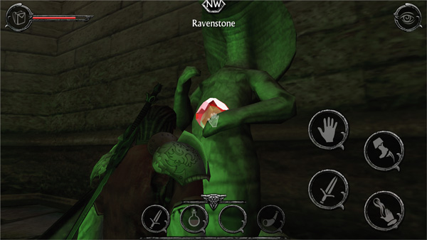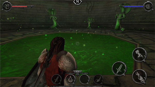 8、顺着通道走到头,推开门,眼前是个大水池子。任务道具掠夺之石碎片2(ravenstone 2)就放置在对面。BOSS是一条长得像龙头的蛇,会从池子里钻出来。你就站在门口那块干地上,上下走位躲它的攻击就行。