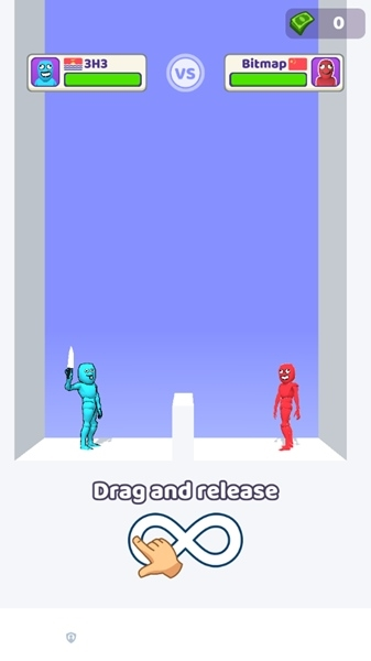1、主角就是俩火柴人,用不同颜色区分你我,特别直观。这火柴人跟个布娃娃似的,被炸一下、撞一下反应都特真实。尤其是被武器干掉后,那武器还会插在它身上,细节满分。就这种简单的关卡、简单的角色、简单的配色,组合起来反而有种迷之吸引力。