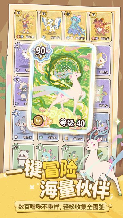 收集宠物这块儿做得很轻度,几百种噜咪让你抓,想集齐图鉴也不是什么难事。操作简化到极致,屏幕上点一下就开始冒险了,什么雨林、沙漠、火山,场景换着来,遇到的噜咪也五花八门。捕捉机制不复杂,配合图鉴系统,让收集这件事变得很纯粹,就是为了满足你的收藏癖。