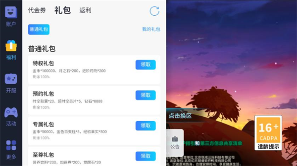 2.哦对了,跟兄弟们说一下,我下的是魔女小卡果盘版。好处就是能用果盘账号直接上,省得注册了。一进去就送点东西,算是开局福利吧,想省事儿的可以试试这个版本。