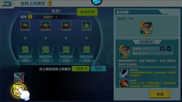 3、每次冒险开打前,都得选好要上场的精灵,看下面这张截图,就是这个布阵界面。