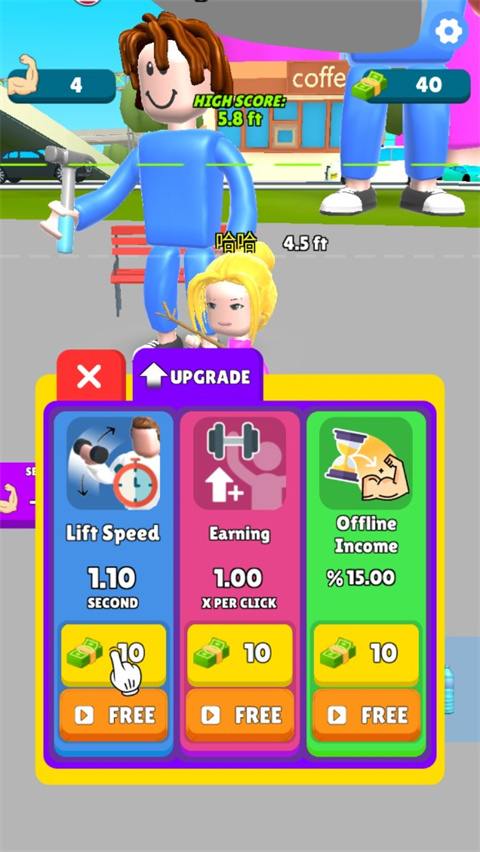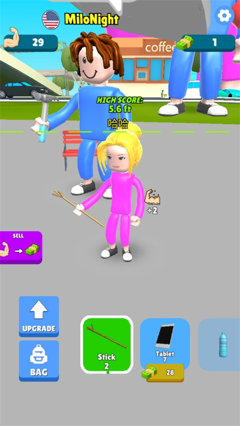2、接下来就是无脑点点点,对着屏幕里的小人狂点就对了,臂力蹭蹭往上涨。