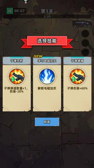 4、清完一波怪,就会弹出这个三选一的技能升级。具体选哪个看你自己的流派,没什么标准答案。