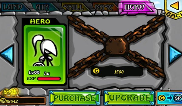 这游戏不光小兵能升级,英雄也能。开打前点英雄头像,进到英雄选项里,就能根据你的需要给英雄的各项属性加点了。提醒一句,升级英雄不花钱,但是要消耗SP点数,所以加点前最好想清楚,优先加对自己最有用的属性。