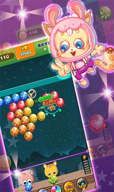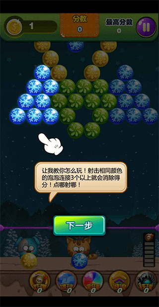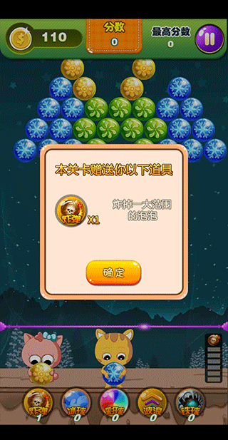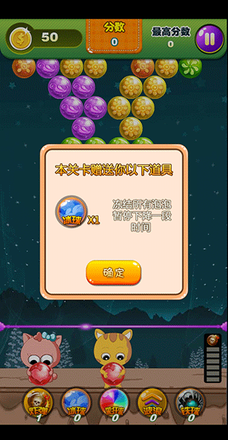 5、还有个冰冻球,能把所有泡泡冻住,减缓它们下落的速度,关键时刻能救命。