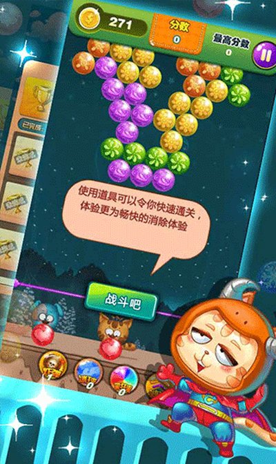3、这游戏不光是消泡泡,有些关卡里会冒出个小怪物,直接拿泡泡砸它脸就行,打败了算过。