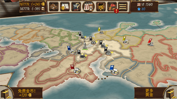 1、培养多种兵种和招募名将,指挥名将参与战争争夺地盘;