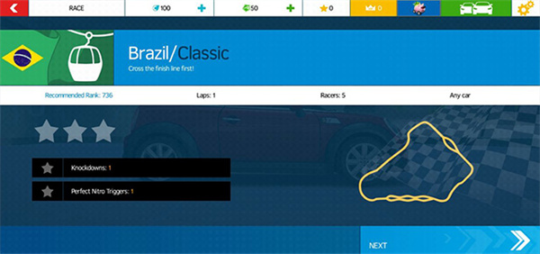 3、下选择需要用的装备,再点击START RACE就能进入赛车挑战了;