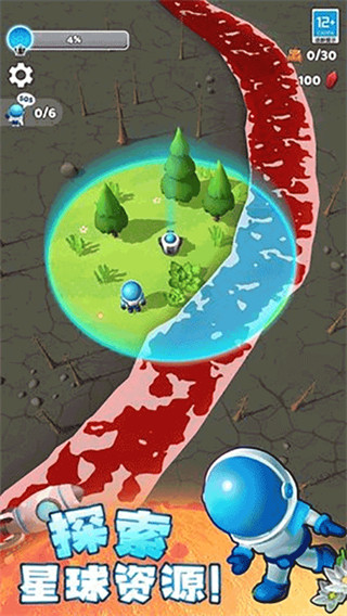 1、在星球上收集各种有用的资源来打造一座基地,还可以对基地进行升级;