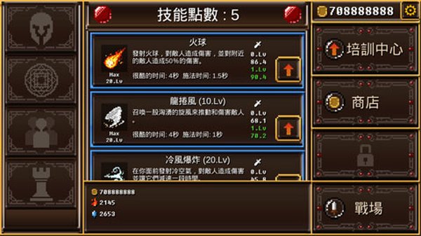 2、技能点就是在这里用的,给你的技能升个级。