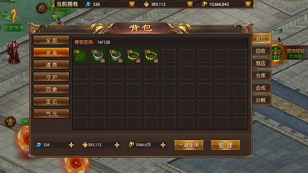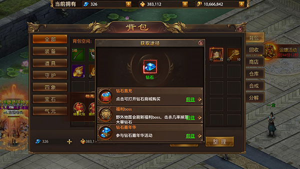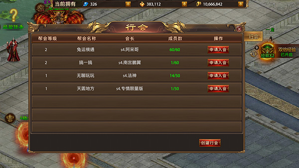 8、赶紧找个行会加了,跟兄弟们组队才能挑战更高级的BOSS。没事多看看行会仓库,大佬们用不上的装备经常会扔进去,运气好能捡到宝。行会红包也别忘了抢。