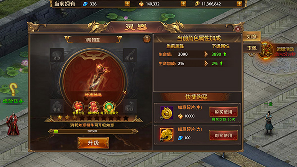 5、如意、玉佩、暗器这些杂七杂八的玩意儿,都是提升实力的重要部件。升级材料主要靠日常刷怪和材料副本,记得每天都去提升一下,加的属性很可观。