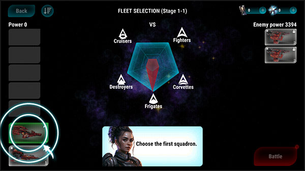 3、看到那个“添加飞船”的选项没?点它,然后就可以开始推图了。