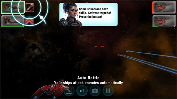 4、进了战场,点飞船的小图标可以切换你上场的飞船,旁边那个就是开火按钮。