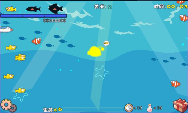 1、说白了,这游戏就是让你控制一条小鱼,通过不断吃掉比自己更小的鱼来长大,最终完成各种关卡目标。简单粗暴,但就是上头。