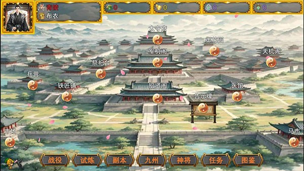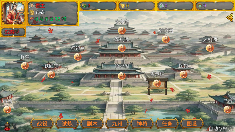 3、主城界面就是搞后勤的地方,收收资源、招点小弟、再爆点兵,为打仗做准备。