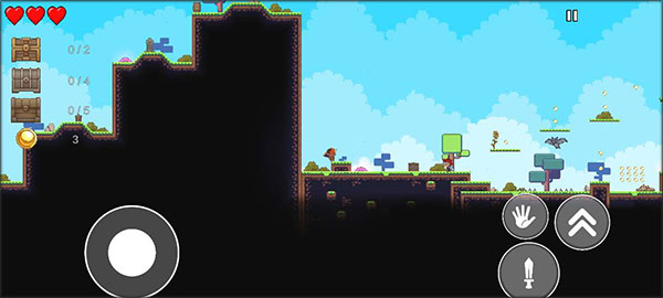 3、进了游戏,操作界面就是下面这样。左手边那个虚拟摇杆控制走位,右手边几个按键负责砍人和跳跃,是老玩家最熟悉的那一套设计了。