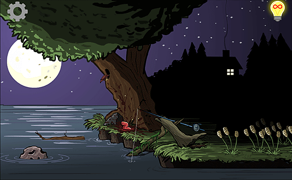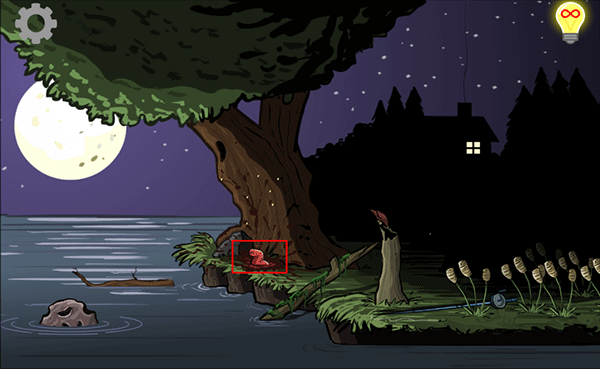 5、搞定青蛙后,点那个黑乎乎的树洞,把那只烦人的小鸟给引走。