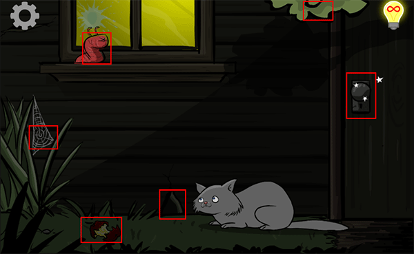 3、点一下猫,把它注意力拉过来,然后马上点门上方的树枝,让猫的视线跟着转移。