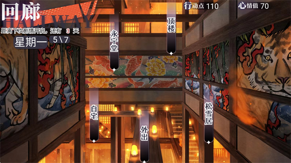 2、行动点是关键。去电玩城能加心情,搞战训能加战力,但这两样都得花行动点。行动点不够了就得回家休整恢复。看到截图里这个界面没,属性和行动点都在这。