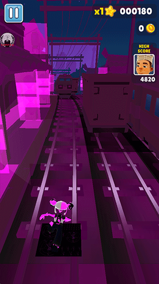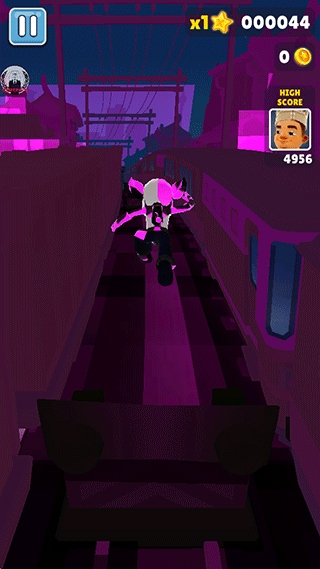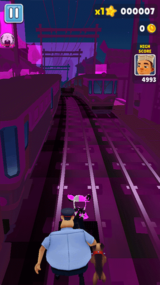 2、操作就不用我多说了吧,手指划拉一下,上蹿下跳、左右横挪,躲火车就完事儿了,纯粹的肌肉记忆。