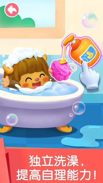 这部分上来就是教娃自己照顾自己那点事儿。刷牙、洗手、洗澡,老玩家(当爹妈的)应该都知道,这些是基础中的基础。游戏里会一步步带着你操作:牙膏要挤多少、上下牙怎么刷、漱口水别咽下去。洗手前还得先剪指甲,然后搓泡泡冲干净,让小手利利索索的。全程都有语音在那儿提示,小孩子自己跟着点点划划,比大人在旁边干吼强,印象也深点。