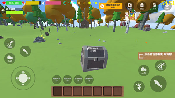 游戏不只是枯燥的采集建造,它巧妙地融入了跑酷元素,让探索过程变得动感十足。地图各处散落的神秘宝箱更像是随机掉落的惊喜,这种“冒险+开箱”的组合拳,极大地提升了游戏的可玩性。