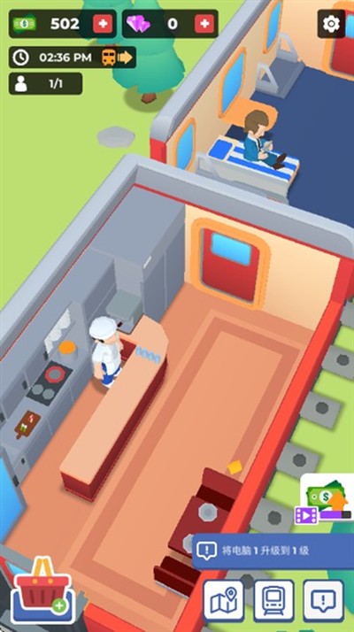 1、这游戏的经营模式跟传统开餐厅、开旅馆的不太一样。你的店是会动的,火车会沿着轨道一直开,到站就停,然后上来一波新客人。这种设定挺有意思,不会一直盯着一个场景看,总有新面孔,玩起来不那么枯燥。